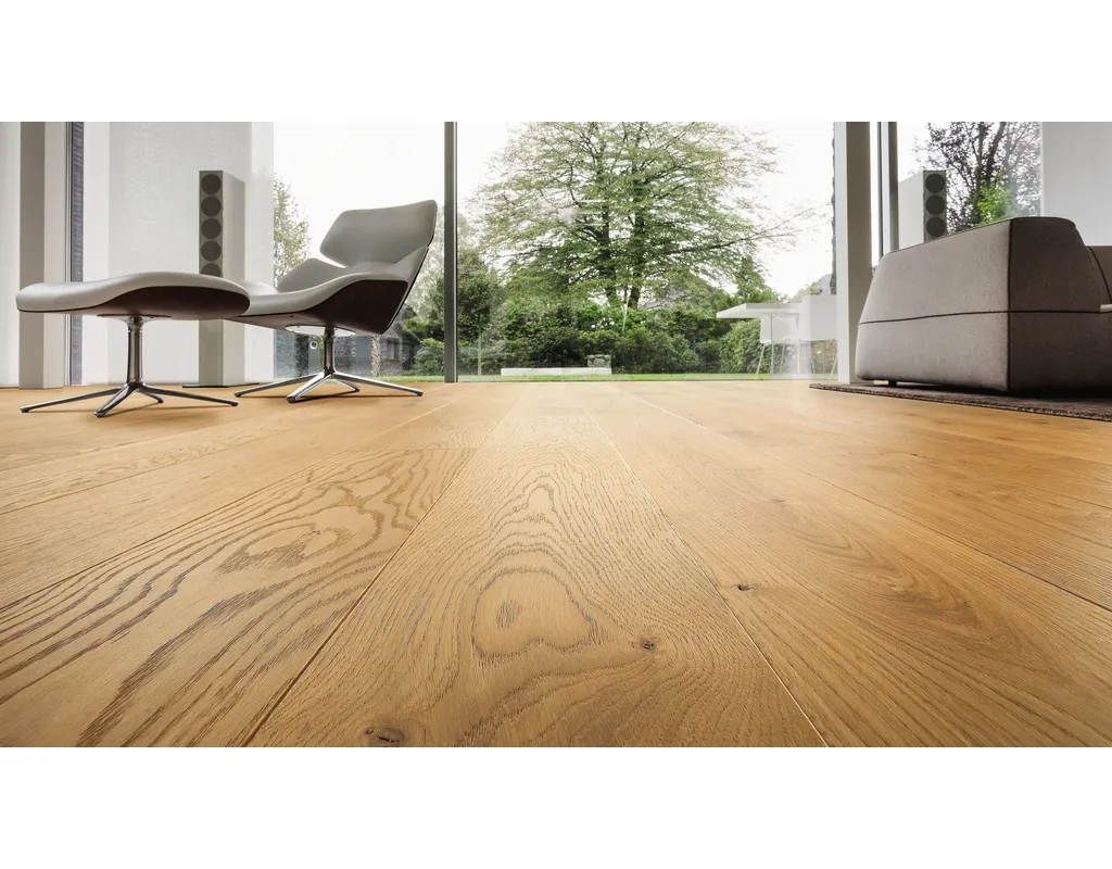Das PARKETT 4000 TC LA 4V Eiche Sauvage überzeugt mit markanter Maserung, strukturierter Oberfläche und naturgeölter Veredelung (nL+). Die 4-seitige Fase hebt das Dielenformat hervor, während die strapazierfähige Holzstruktur für Rustikalität und Komfort sorgt. Fußbodenheizung geeignet.
