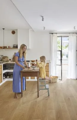 Die 187 x 2000 mm große Diele mit 13 mm Stärke und 2,6 mm Nutzschicht überzeugt durch ihre mattlackierte, gebürstete Oberfläche und die rundum Mikrofasung.