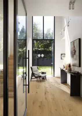 Die feine Maserung der Eiche verleiht dem Boden Natürlichkeit und Ruhe – ideal für ein stilvolles, modernes Wohnambiente mit skandinavischem Charakter.