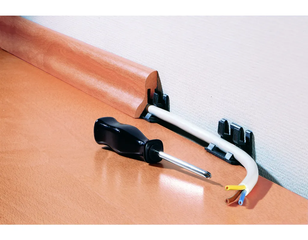 Die passenden Befestigungsclips zu unserem Tymbrr Sockelleisten Sortiment mit einer Reichweite von ca. 5-6 Leisten/Packung.