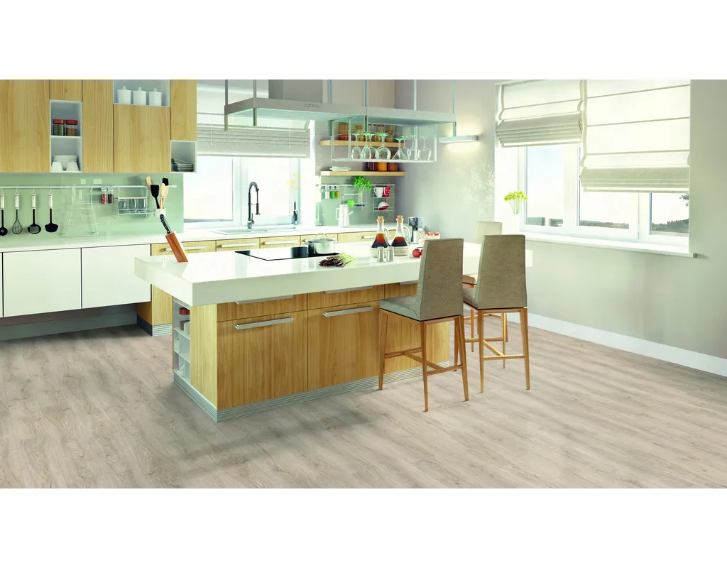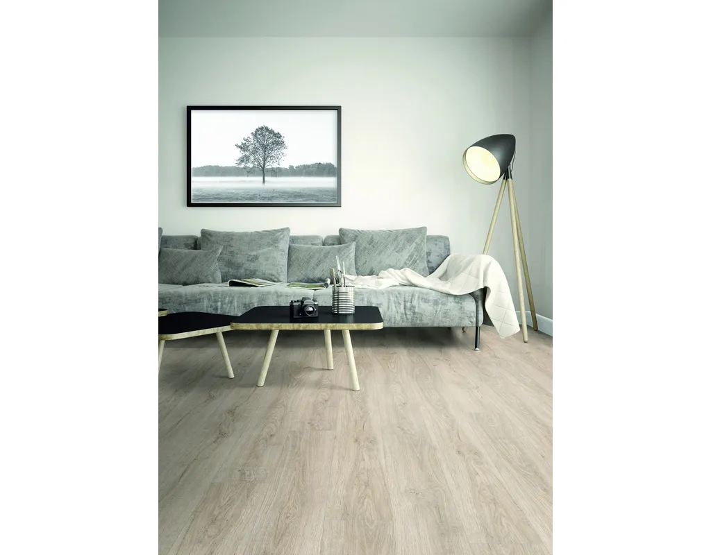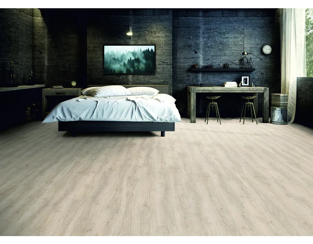 Eine 0,3 mm starke Nutzschicht mit Struktur sorgt für Strapazierfähigkeit und Pflegeleichtigkeit, die Dekorschicht bringt authentisches Design, und die doppelte Vinylträgerschicht garantiert Stabilität.