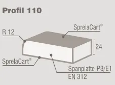 Sprela Profil 110 Fensterbank 300 mm Dekor A103 CR Weiß; 24 mm Länge 4100 mm, R12, P3/E1 EN 312