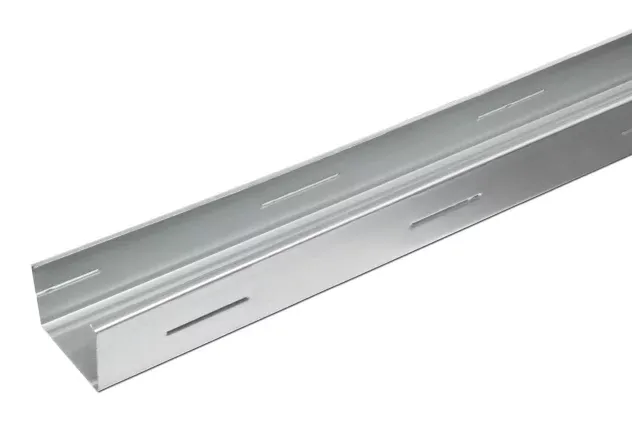 Kaltverformte Stahlblechprofile mit C-förmigem Querschnitt, vornehmlich zur Anwendung als Ständerprofil von Montagewänden, aber auch als Tragprofil von freitragenden Decken. Zur Durchführung von Elektrokabeln sind H-förmige Stanzungen angebracht.